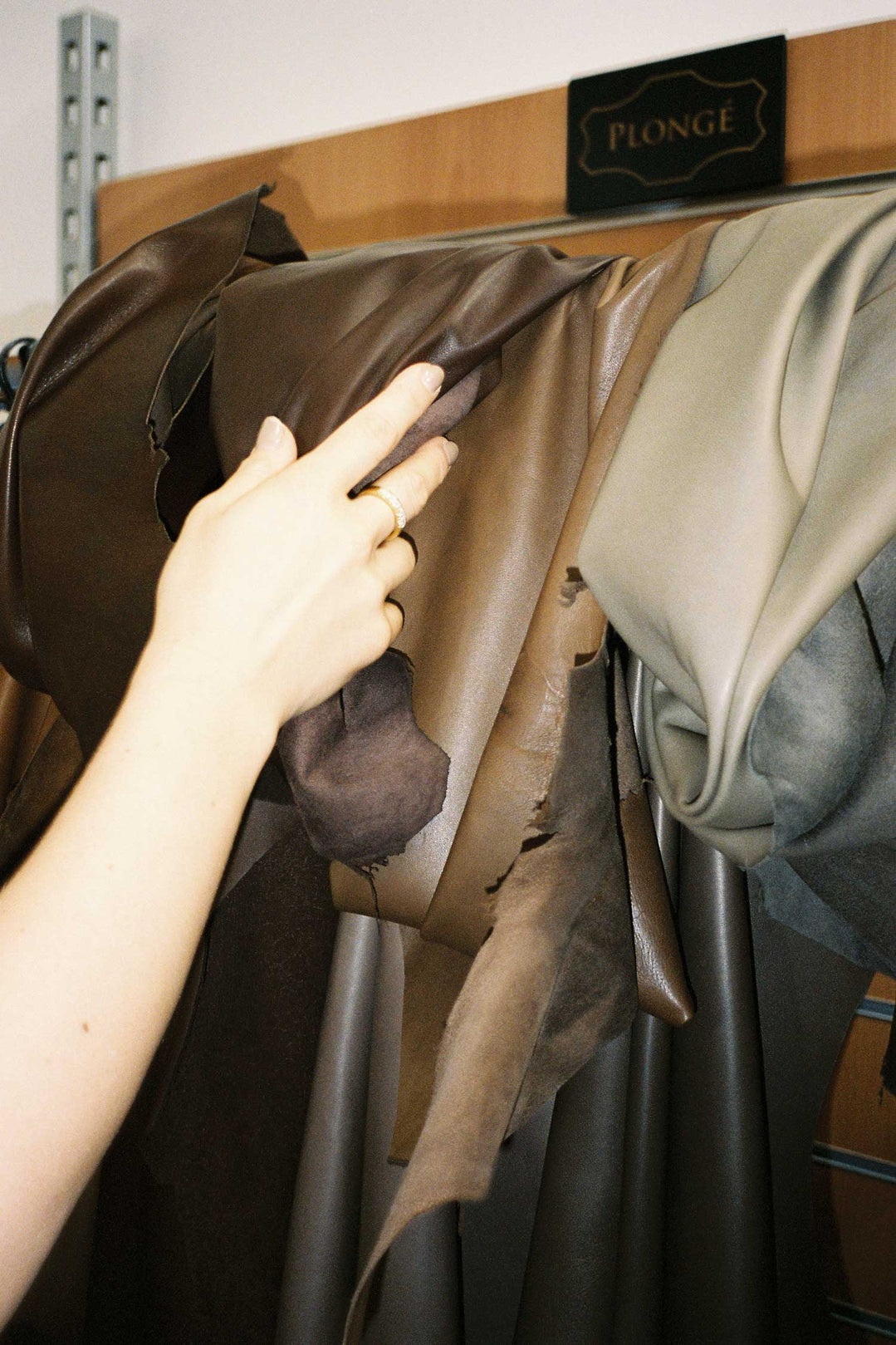 The showroom houses a selection of over 250 colourways of our much-loved plongé lambskin. Plongé is an uncoated finish that ensures that the material remains as close to its original softness as possible and celebrates the individual characteristics of the skin, which are considered to be a hallmark of the leather’s premium quality.