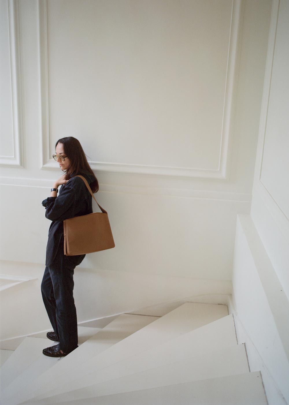 Keti Toloraia wears the Charlie Bag in Toffee Lambskin.