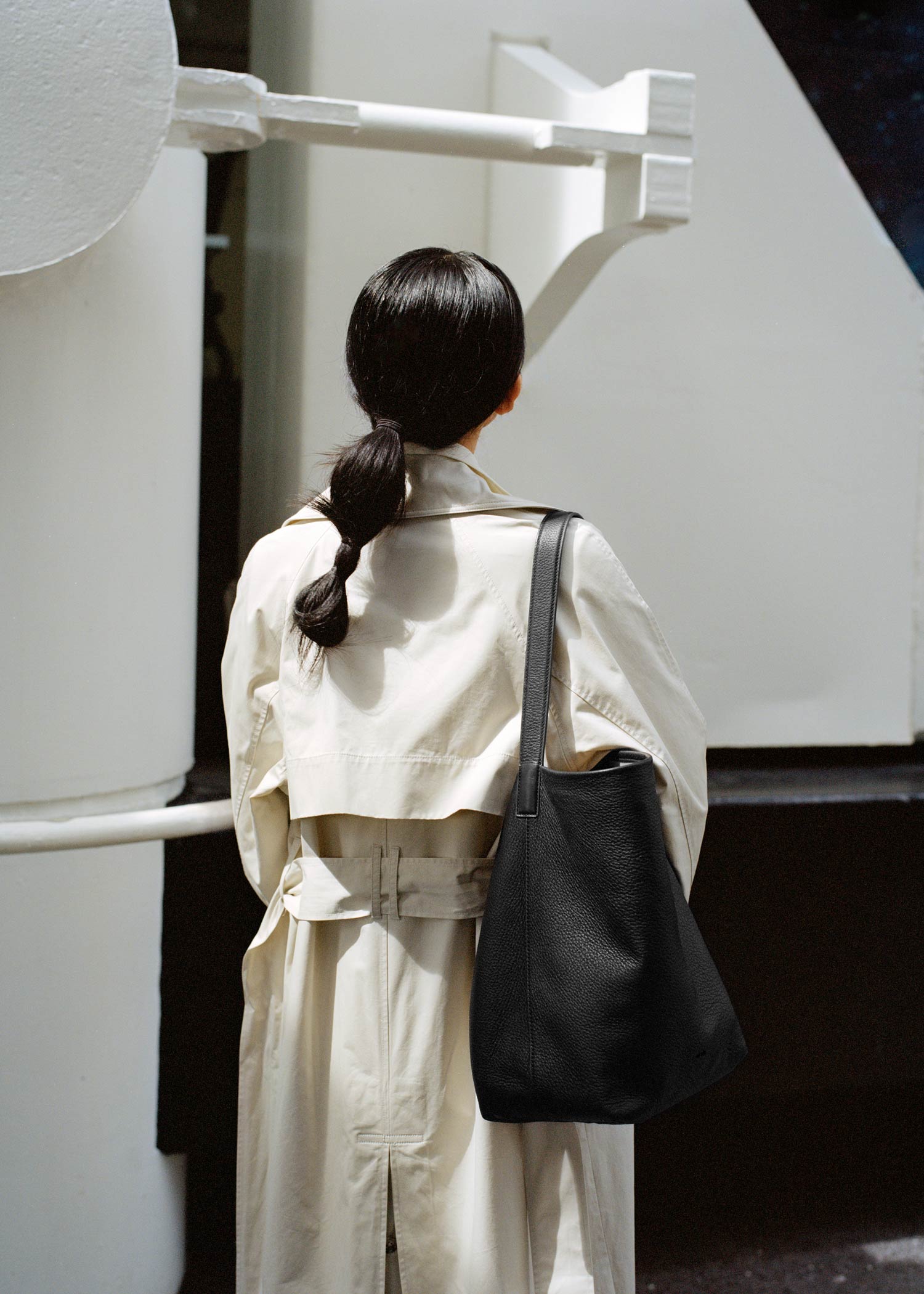 Our Claudia Tote [3] is the ideal bag for those who need to carry a lot and want to look good doing it—from mothers to gym-goers to regular travellers. With enough room to pack for an overnight trip or as a carry-on, Claudia is unfussy in shape and practical in proportion. It features an exterior pocket that unzips at the bottom, transforming into a sleeve to slide over your suitcase handle.