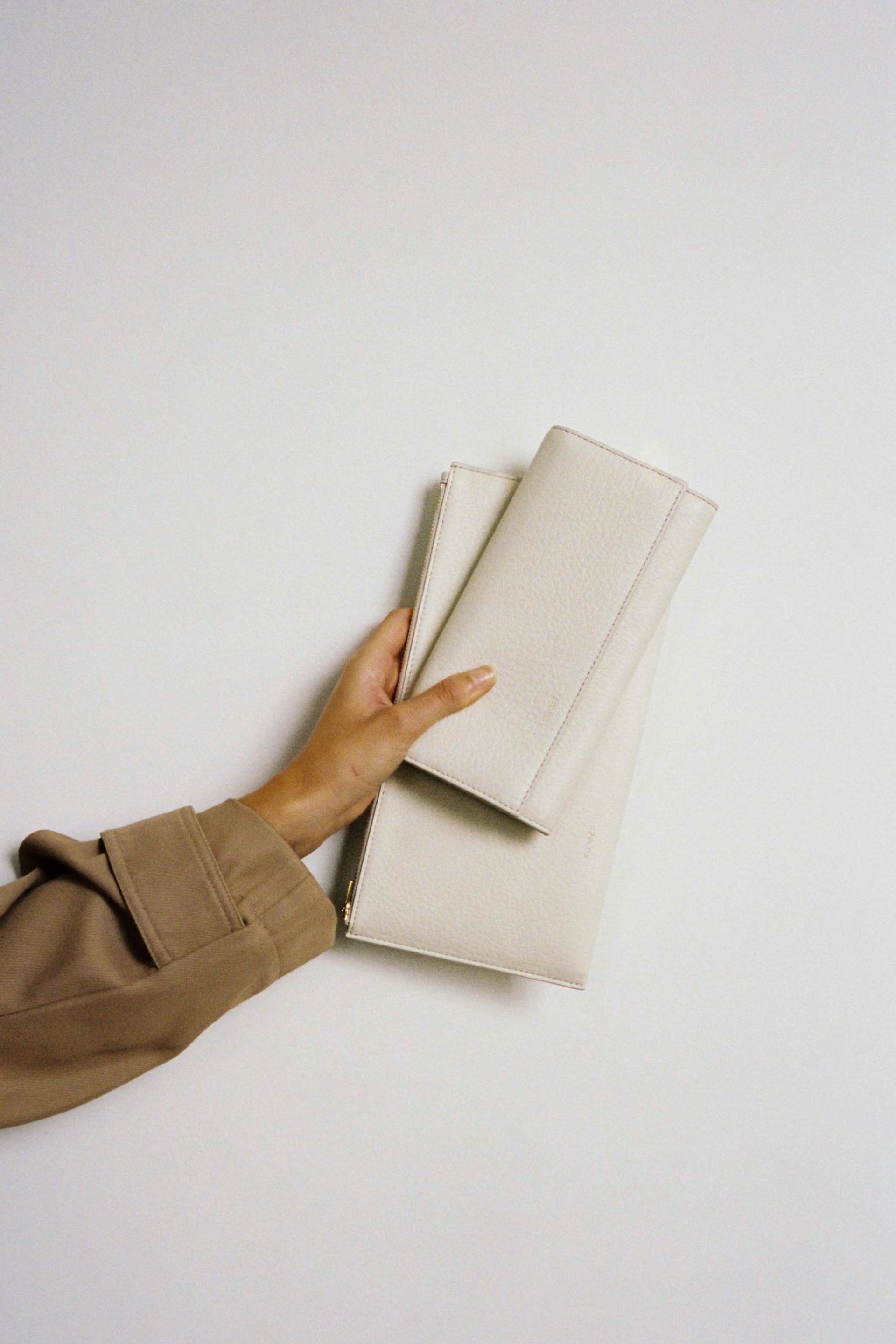 On one hand, 'Sebastian Wallet' looks after cards and cash, and in the other, our 'Adrian Envelope' keeps safe boarding passes, jewllery, hand creams and hair ties.